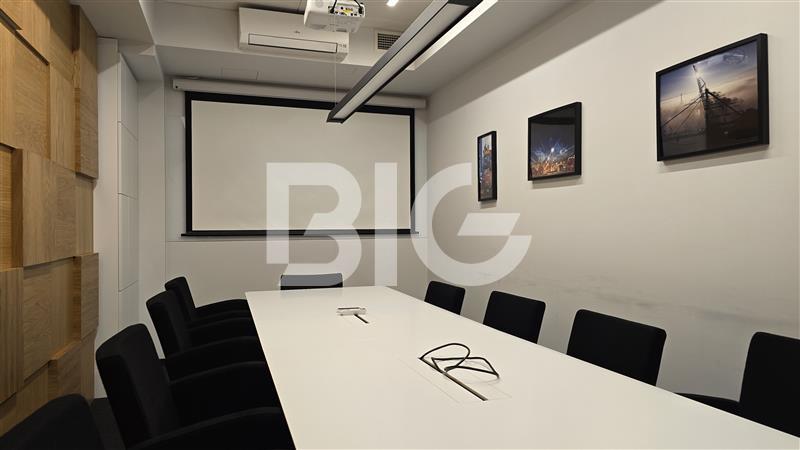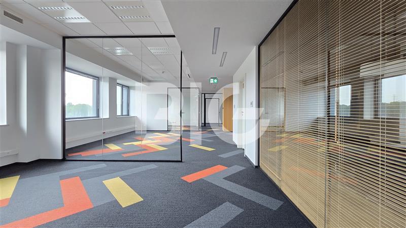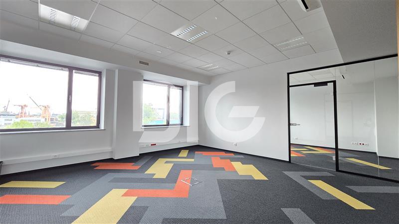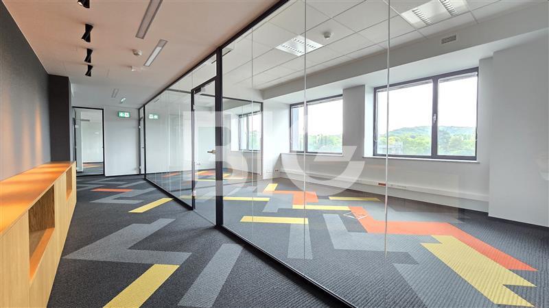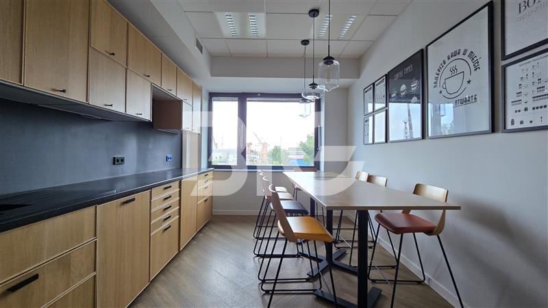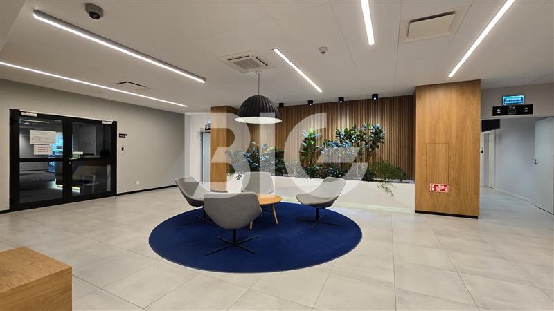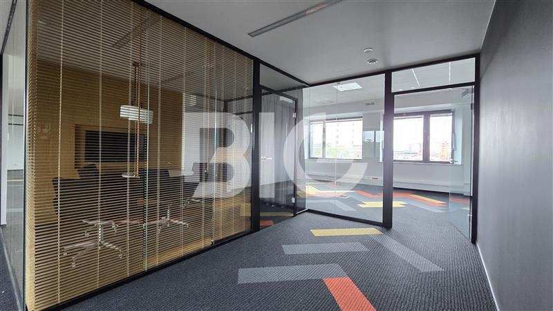 Powierzchnia biurowa o wysokim standardzie wykończenia, w której skład wchodzą: gabinety, przeszklone open space, salki konferencyjne, dwa aneksy kuchenne, recepcja.