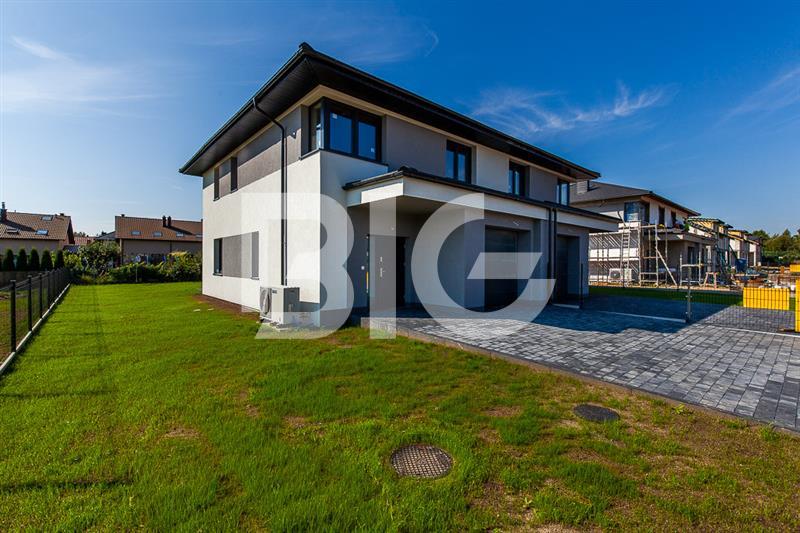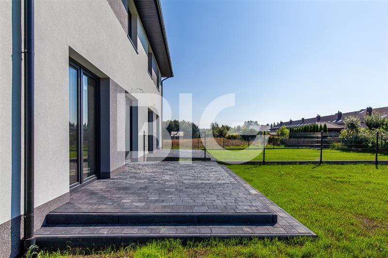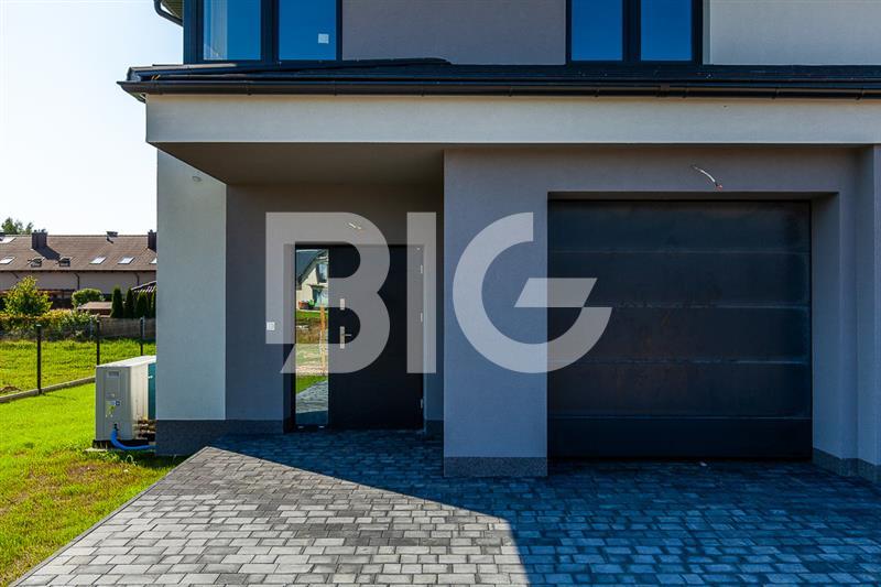 Dom położony jest na działce 440m2. Salon oraz taras z południowo zachodnią ekspozycją, co gwarantuje słońce przez cały dzień. Budynek oddany będzie w stanie deweloperskim, rozprowadzona instalacja interentowa, tv, alarmowa. Dachowka betonowa antracytowa, rynny antracytowe, elewacja jasnoszara z dodatkami ciemnoszarego. Ogrzewanie podłogowe - pompa ciepła firmy DE DIETRICH z zasobnikami, w całym domu również w garażu, sterowanie w każdym pomieszczeniu indywidualnie. Okna trzyszybowe 7 komorowe.