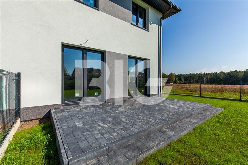 Nowy dom w zabudowie bliźniaczej położony w Baninie. Dom w stanie deweloperskim, nowoczesny i funkcjonalny projekt.