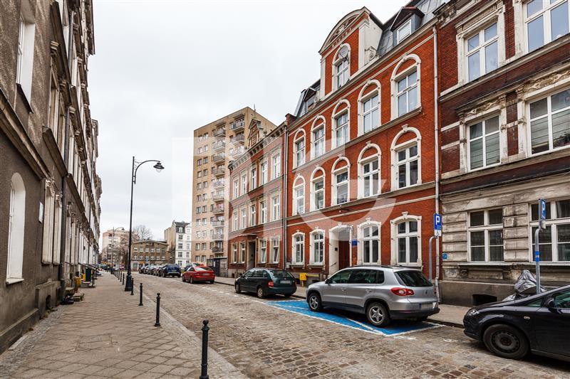 Mieszkanie usytuowane na 1 piętrze kamienicy z lat 20 XX wieku. Elewacja kamienicy odrestaurowana, obłożona klinkierem wraz ze zdobieniami wokół okien. Kamienica ujęta w gminnej ewidencji zabytków.
