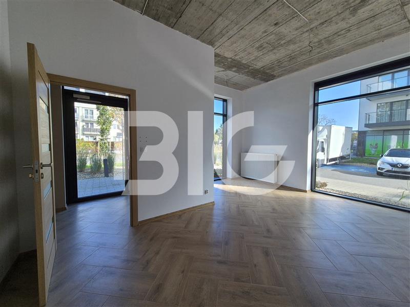 - Duże witryny zapewniające naturalne światło i idealne miejsce na reklamę,
