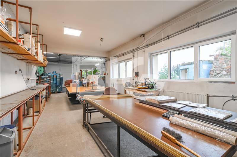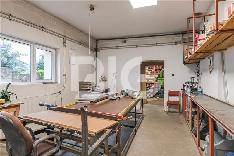 Na parterze budynku znajduje się magazyn z bramą wjazdową z poziomu zero, dwa pomieszczenia gospodarcze, toaleta oraz kotłownia.