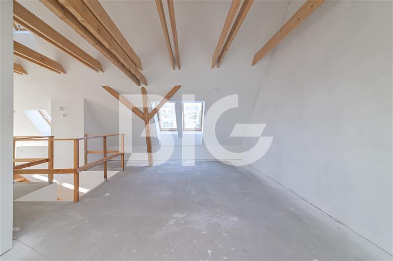 Piętro jest w formie otwartej przestrzeni do aranżacji przez klienta - wydzielona została łazienka.