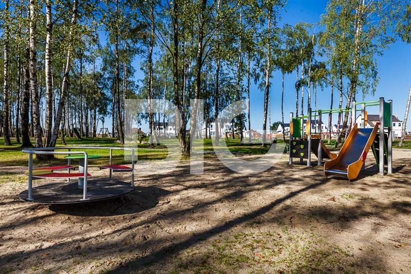 Dom położony na zamkniętym osiedlu, z pięknie zagospodarowanym otoczeniem. Wjazd przez szlaban, dojazd kostką brukową. Na terenie osiedla znajduje się m.in. park brzozowy z terenami spacerowymi, plac zabaw, staw, boisko.