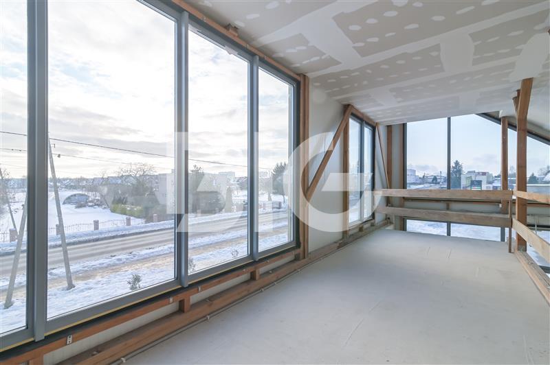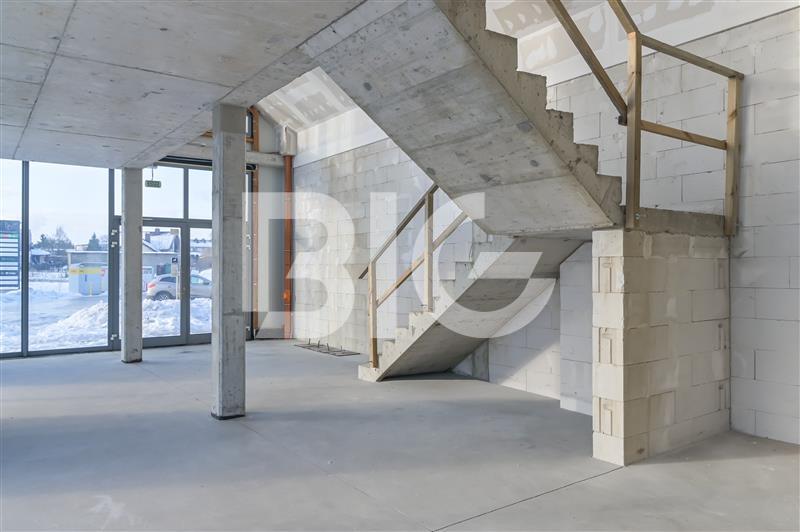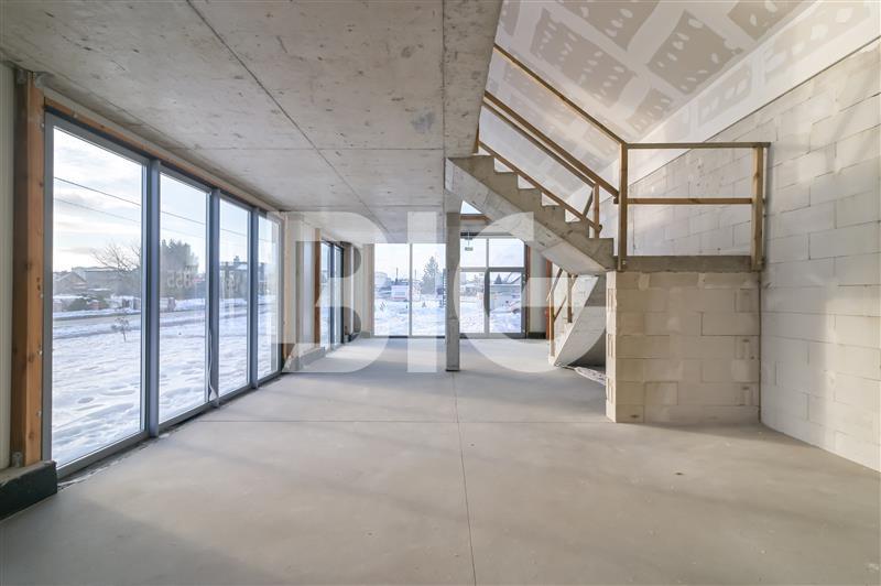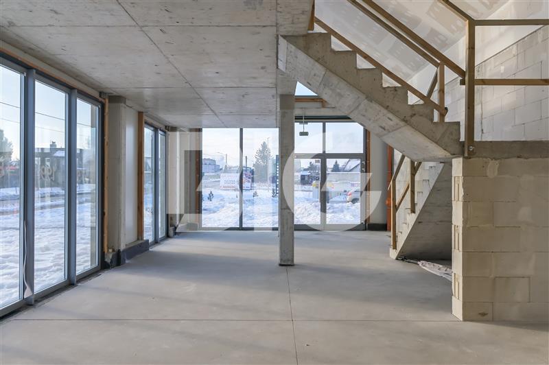 Narożny lokal o powierzchni 195,55mkw z antresolą ma własną witrynę od frontu oraz od strony ulicy.