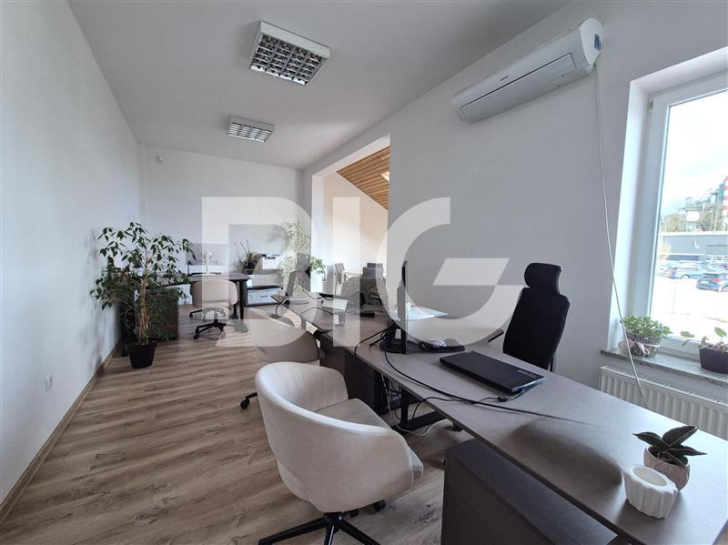 Aktualnie w układzie open space – możliwość wydzielenia gabinetu/salki konferencyjnej.