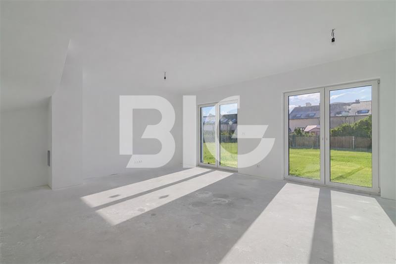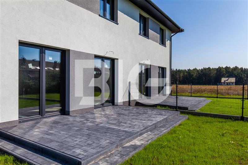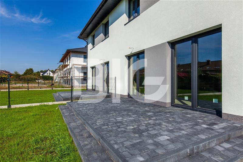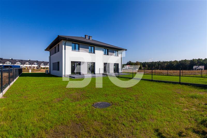 Nowy dom w zabudowie bliźniaczej położony w Baninie. Dom w stanie deweloperskim, nowoczesny i funkcjonalny projekt.