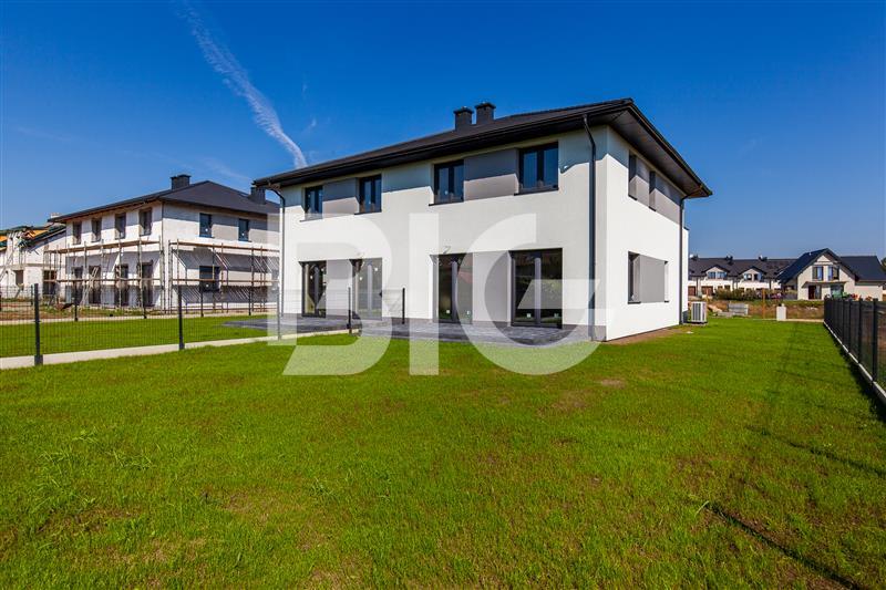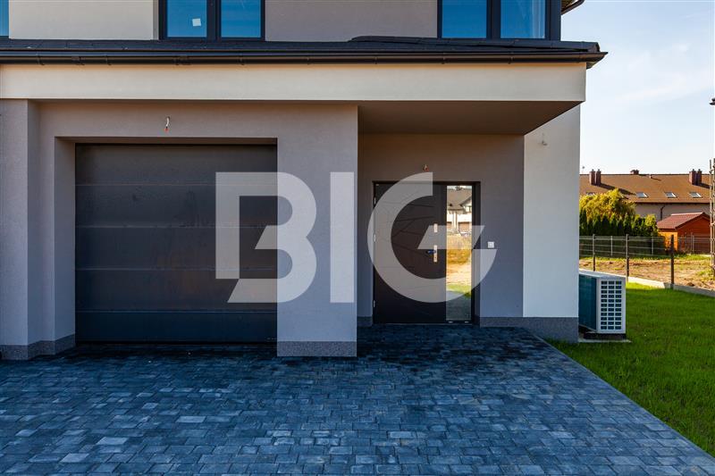 Dom położony jest na działce 440m2. Salon oraz taras z południowo zachodnią ekspozycją, co gwarantuje słońce przez cały dzień. Budynek oddany będzie w stanie deweloperskim, rozprowadzona instalacja interentowa, tv, alarmowa. Dachowka betonowa antracytowa, rynny antracytowe, elewacja jasnoszara z dodatkami ciemnoszarego. Ogrzewanie podłogowe - pompa ciepła firmy DE DIETRICH z zasobnikami, w całym domu również w garażu, sterowanie w każdym pomieszczeniu indywidualnie. Okna trzyszybowe 7 komorowe.