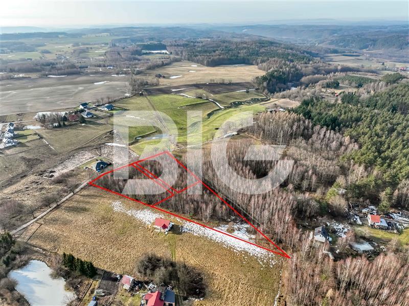 Działka położona w sąsiedztwie lasu, 300m od głównej drogi.