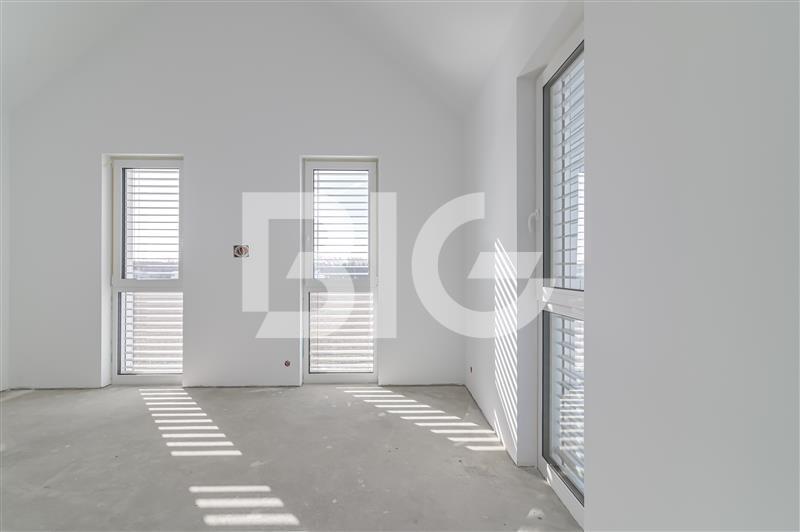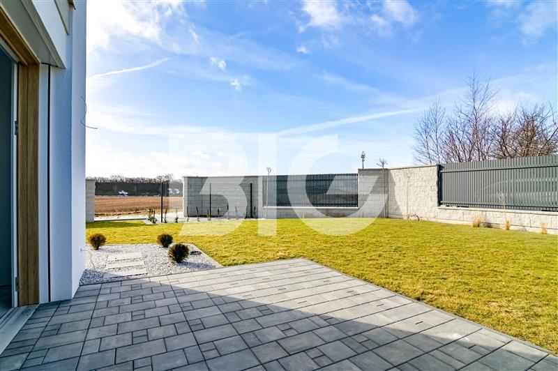 • Wykończenie: dom wykończony w standardzie deweloperskim, ściany gładzone i malowane na biało, budynek wybudowany z silikatu, ocieplony styropianem grafitowym 22cm, tynk mineralny malowany farbą silikatową, dachówka betonowa, dach ocieplony wełną mineralną i specjalną folią paraizolacyjną, okna trzyszybowe pięciokomorowe z potrójną uszczelką, montowane z taśmą wiatroszczelną.