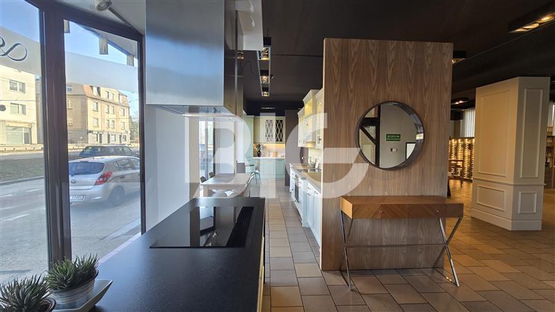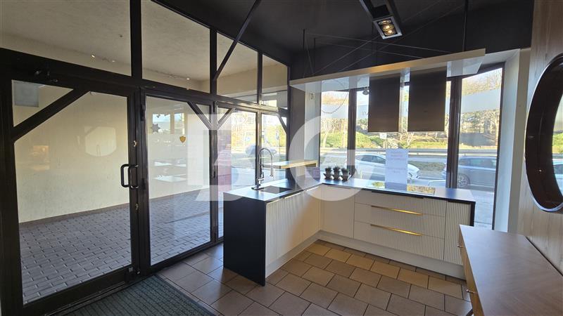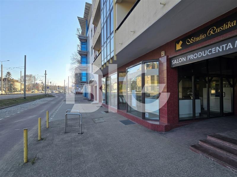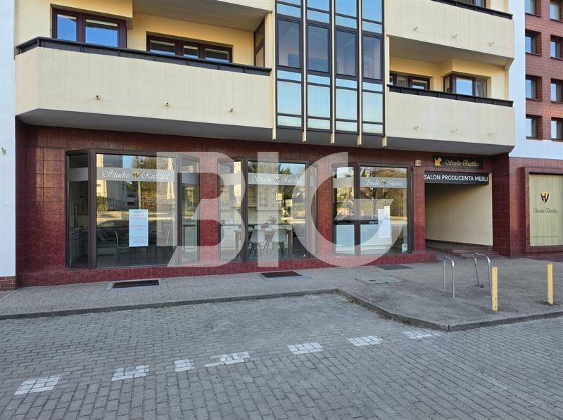 Lokal z dużą witryną widoczną z ulicy przy drodze o olbrzymim natężeniu ruchu.
