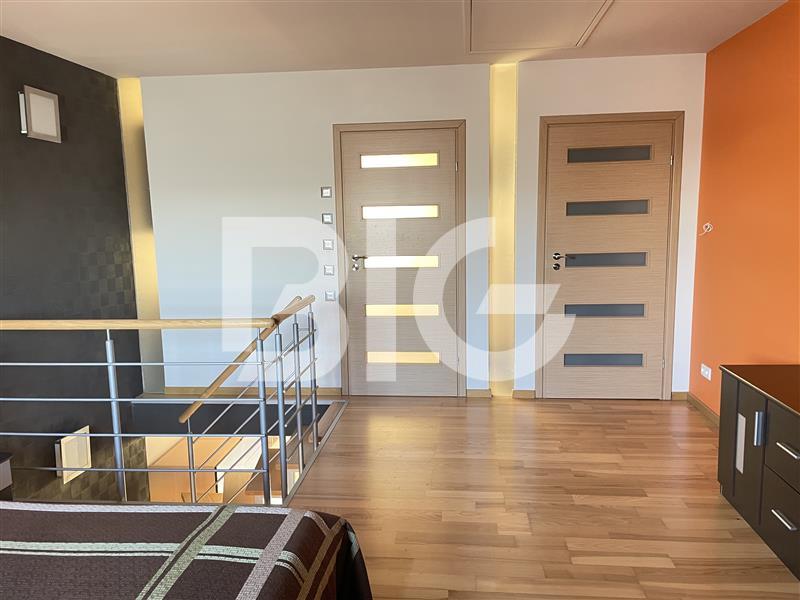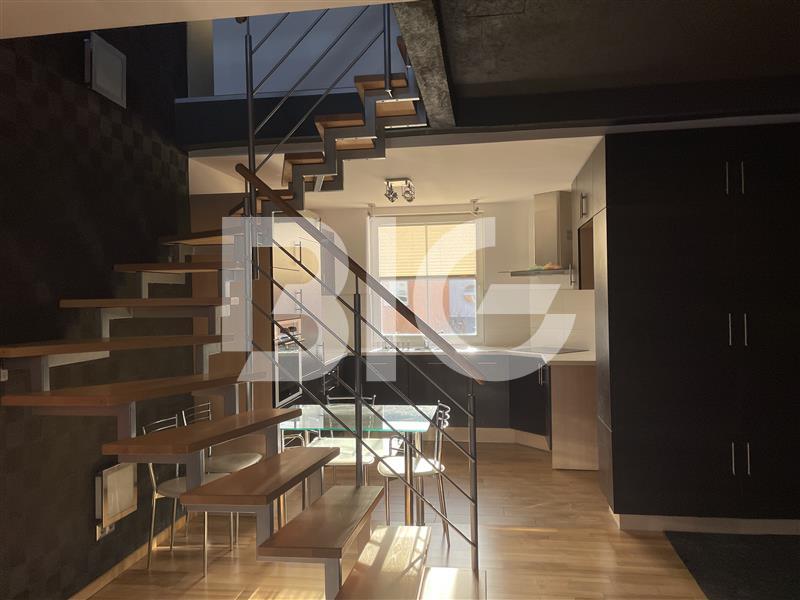 Lokal dwupoziomowy o powierzchni 55m2. Na pierwszej kondygnacji znajduje się salon połączony z kuchnią oraz toaleta. Z salonu wyjście na balkon. Drugi poziom stanowi otwarta sypialnia, garderoba oraz łazienka.