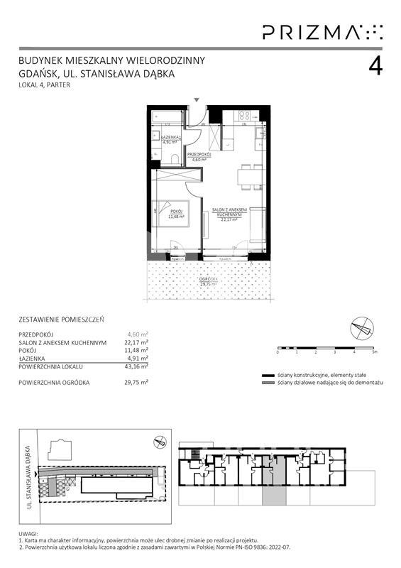 Mieszkanie o powierzchni 43,16 m2 znajdujące się na parterze.