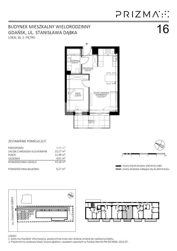 Mieszkanie o powierzchni 43,16 m2 znajdujące się na drugim piętrze.