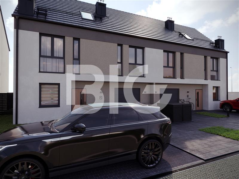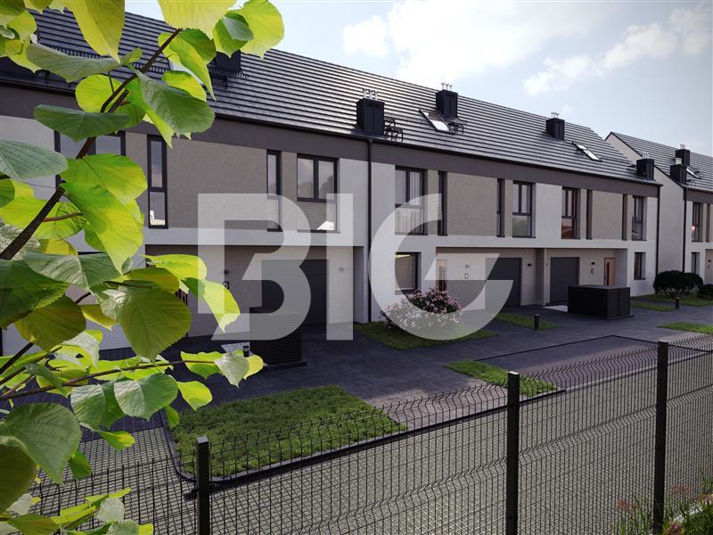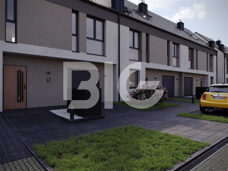 • Funkcjonalny układ pomieszczeń: dom w zabudowie szeregowej, powierzchnia całkowitej ok. 150m2, użytkowej ok 120m2 trzy kondygnacje. Na parterze znajduje się salon, kuchnia, toaleta, garaż. Piętro stanowią cztery sypialnie, garderoba, łazienka. Poddasze w formie otwartej przestrzeni.