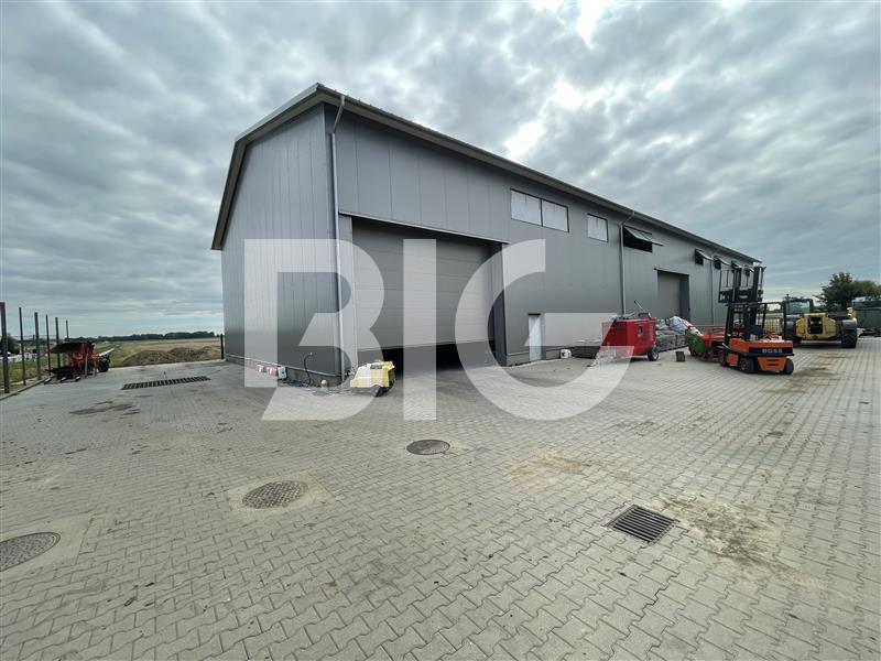Magazyn 500m2, wysokość w kalenicy 11m, brama wjazdowa6,6x5. Posadzka przemysłowa, niepylna. Teren utwardzony przed halą, dojazd asfaltowy.